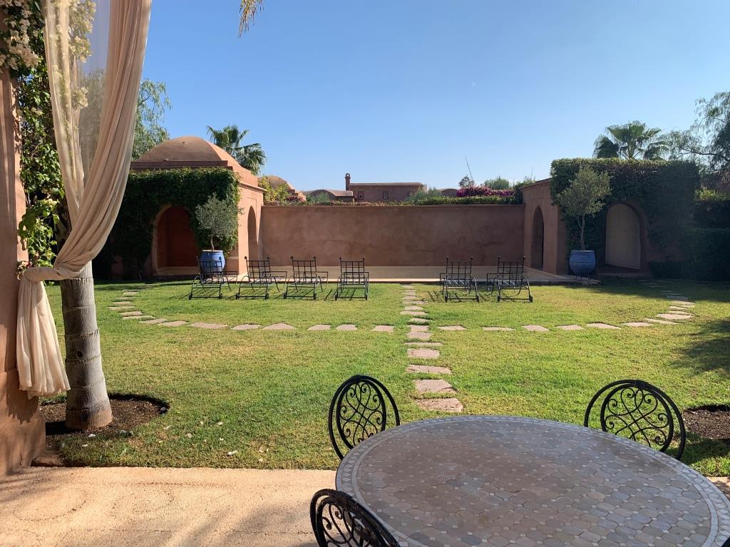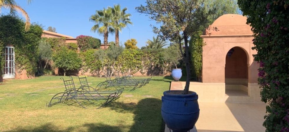 Superbe Villa Boccara meublée avec soin et très bien entretenue dans une résidence sécurisée proche de 3 des plus beaux golfs de Marrakech, à 10 minutes de l’école Américaine.