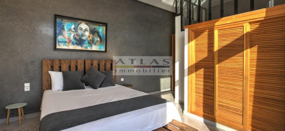 Découvrez cette somptueuse villa contemporaine située à seulement 12 km d’Essaouira (une dizaine de minutes), dans un cadre paisible à proximité de la route côtière menant à Safi. Érigée sur un terrain de 1500 m², cette propriété moderne et élégante offre une surface habitable de 240 m², parfaite pour un investissement locatif ou une résidence principale.