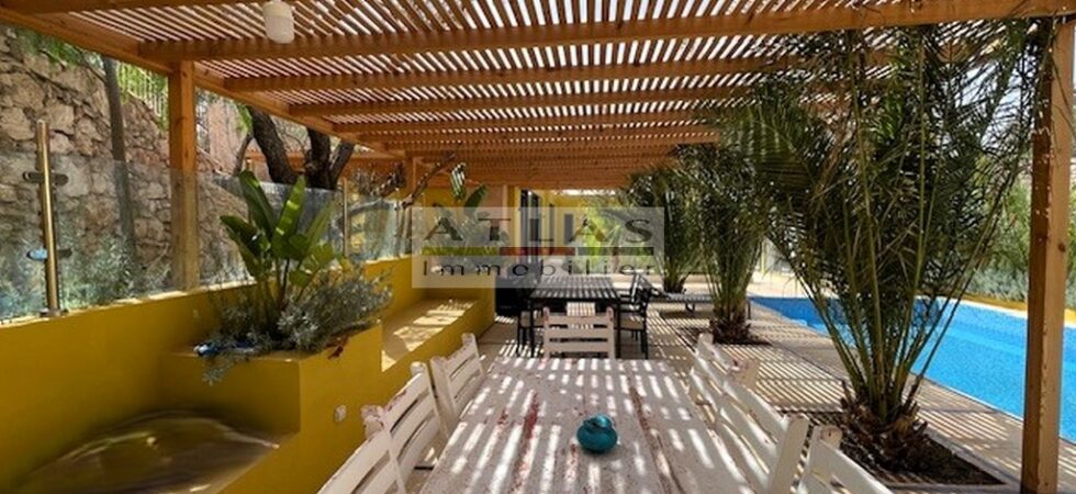 - Extérieur : Profitez d’une piscine privée entourée de bains de soleil, d’une salle à manger ombragée sous une vaste pergola, et d’une cuisine d’été idéale pour recevoir.