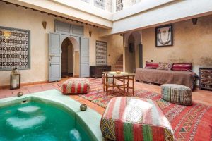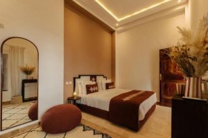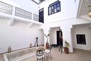 Riad se composant de sept chambres, dont deux suites, d’un grand patio aménagé d’une piscine chauffée et de lieux de repos, de deux salons de détente entièrement équipés, d’une belle terrasse aménagée pour profiter pleinement du soleil et du calme.
